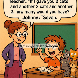 Teacher: “If I gave you 2 cats and another 2 cats and another 2, how many would you have?”Johnny: “Seven.” Teacher: “No, listen carefully… If I gave…