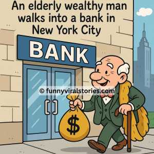 An elderly wealthy man walks into a bank in New York City