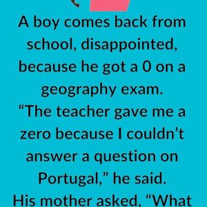 A boy comes back from school, disappointed, because he got a 0 on a geography exam. “The teacher gave me a zero because I couldn’t answer a…