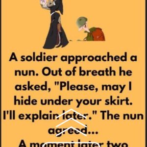 Out of breath, he asked, “Please, may I hide under your skirt? I’ll explain later.” The nun agreed… A moment later two Military Police ran up and…