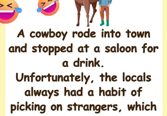 A cowboy rode into town and stopped at a saloon for a drink. Unfortunately, the locals always had a habit of picking on strangers, which he was.