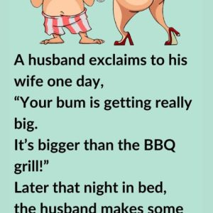 A husband exclaims to his wife one day, “Your bum is getting really big. It’s bigger than the BBQ grill!” Later that night in bed, the husband…