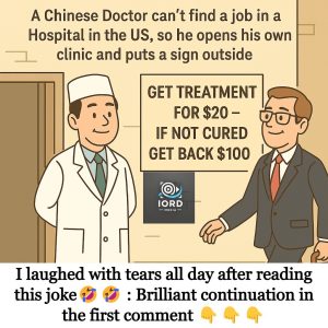 A Chinese Doctor can’t find a job in a Hospital in the US, so he opens his own clinic and puts a sign outside ‘GET TREATMENT FOR…