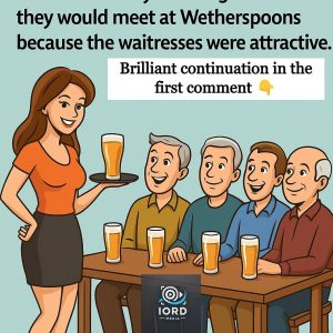 A group of male friends, all turning 40, discussed where they should meet for lunch. Finally it was agreed that they would meet at Wetherspoons because the…