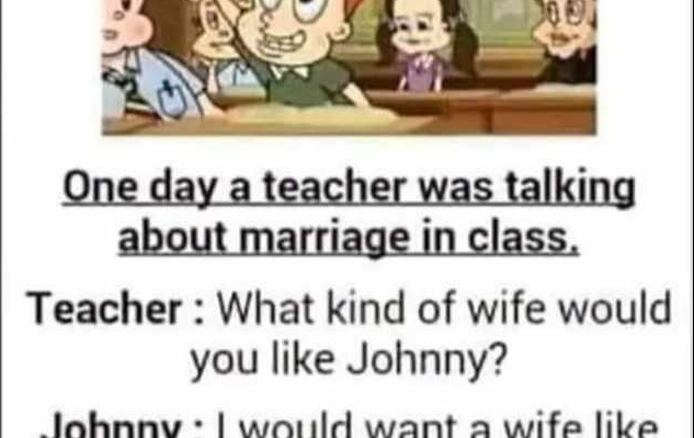 One day a teacher was talking about marriage in class. Teacher: What kind of wife would you like Johnny?