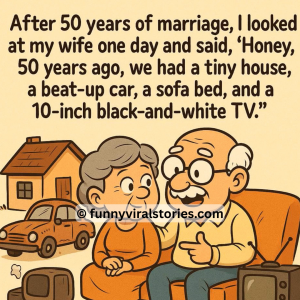 “After 50 years of marriage, I looked at my wife one day and said, ‘Honey, 50 years ago, we had a tiny house, a beat-up car, a…