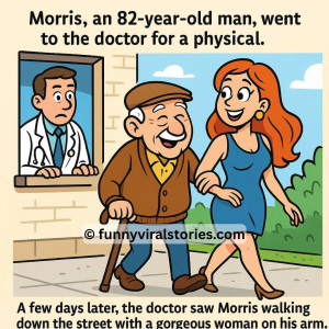 Morris, an 82-year-old man, went to the doctor for a physical. A few days later, the doctor saw Morris walking down the street with a gorgeous young…