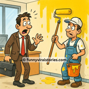 A businessman went into the office and found an inexperienced handyman painting the walls. The handyman was wearing two heavy parkas on a hot summer day. Thinking…