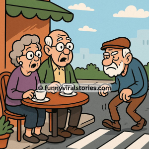 An elderly couple was sitting outdoors at a cafe when they noticed an old man who seemed to be having trouble crossing the street with an ungainly…