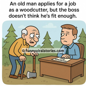 An old man applies for a job as a woodcutter, but the boss doesn’t think he’s fit enough.He tells the boss he is able to cut down…