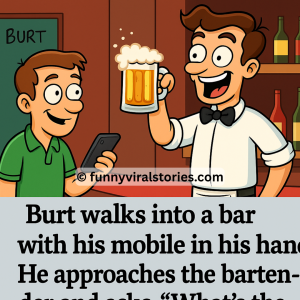Burt walks into a bar with his mobile in his hand. He approaches the bartender and asks,“What’s the Wi-Fi password?” The bartender looks at him and says,“You…