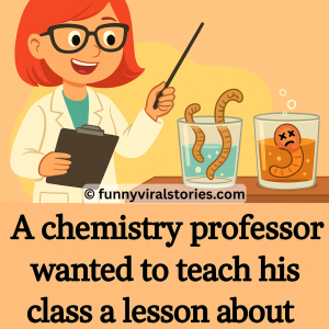 A chemistry professor wanted to teach his class a lesson about the evils of alcohol,so he produced an experiment that involved a glass of water, a glass…