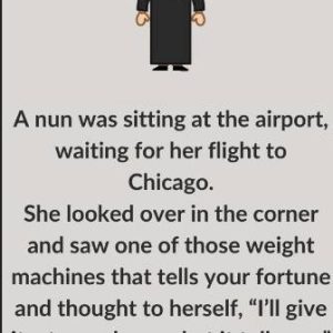 A nun was sitting at the airport, waiting for her flight to Chicago. She looked over in the corner and saw one of those weight machines that…