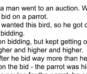 One day a man went to an auction. While there, he bid on a parrot. He really wanted this bird, so he got caught up in the…