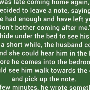 A woman, cranky because her husband was late coming home again, decided to leave a note, saying, “I’ve had enough and have left you. Don’t bother coming…