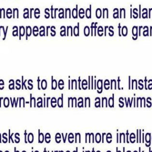 Three blonde men are stranded on an island. Suddenly a fairy appears and offers to grant each one of them a wish. The first blonde asks to…