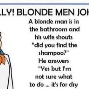 FINALLY! BLONDE MEN JOKES: A blonde man is in the bathroom and his wife shouts “Did you find the shampoo?” He answers “Yes but I’mnot sure what…