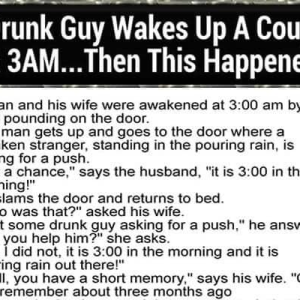 A Drunk Guy Wakes Up A Couple At 3 AM…Then This Happened. A man and his wife were awakened at 3:00 am by a loud pounding on…
