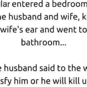 A HORNY BURGLAR !!! A burglar entered a bedroom, tied up the husband and wife, kissed the wife’s ear and went to the bathroom… The husband said…