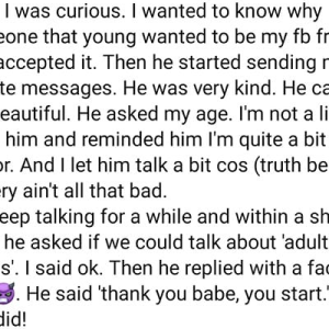 A few days ago I received a friend request on FB from a young attractive guy about 28 years old… I was curious. I wanted to know…