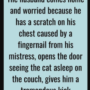 When the husband came home, he was worried because his mistress had pulled out his nails on his chest. Seeing the cat sleeping on the couch, he…