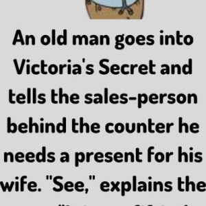 An old man goes into Victoria’s Secret and tells the salesperson behind the counter he needs a present for his wife. “See,” explains the man, “It is…