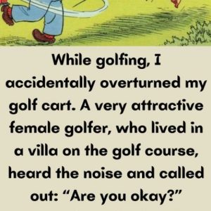 While golfing, I accidentally overturned my golf cart. A very attractive female golfer, who lived in a villa on the golf course, heard the noise and called…