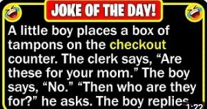 One is nine years old and the other is four. The oldest boy grabs a box of tampons from the shelf and carries it to the register…