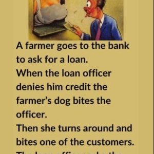 A farmer goes to the bank to ask for a loan. When the loan officer denies him credit the farmer’s dog bites the officer. Then she turns…