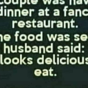 A couple was having dinner at a fancy restaurant. As the food was served, the husband said: The food looks delicious, let’s eat. Wife: Honey, you always…
