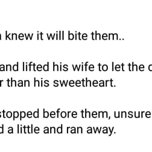 A married couple was walking through a garden when suddenly a dog ran towards them. They both knew it would bite them. The husband lifted his wife…