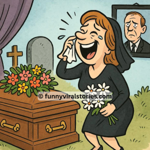 A woman is at the funeral of her husband, everyone is going up to say kind words about him, when one man turns around to the wife…