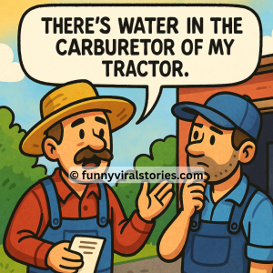 A farmer goes to the mechanic and says:“There’s water in the carburetor of my tractor.” The mechanic looks puzzled and replies:“Water in the carburetor? That’s impossible. Are…