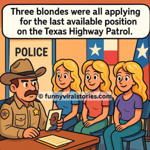 Three blondes were all applying for the last available position on the Texas Highway Patrol. The detective conducting the interview looked at the three of them and…