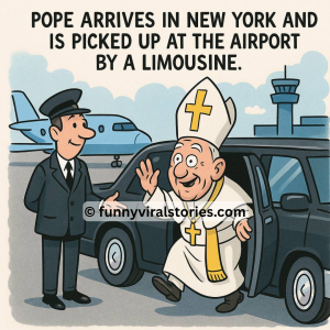 An elderly Pope arrives in New York and is picked up at the airport by a limousine. Upon seeing the car, he gestures to the driver and…