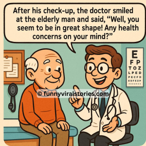 After his check-up, the doctor smiled at the elderly man and said, “Well, you seem to be in great shape! Any health concerns on your mind?” “Actually,…