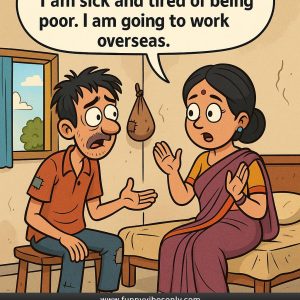 A poor man told his wife, I am sick and tired of being poor, I am going to work overseas. So, he took off to Africa. A…