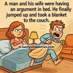 A man and his wife were having an argument in bed. He finally jumped up and took a blanket to the couch. The next day the wife…