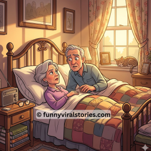 At this point, the husband suddenly arrives home and finds his wife in the bedroom talking to someone.