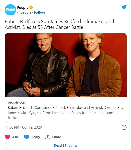 Robert Redford’s third kid James is survived by his wife Kyle, along with Dylan and Lena. James was Robert Redford’s third child.